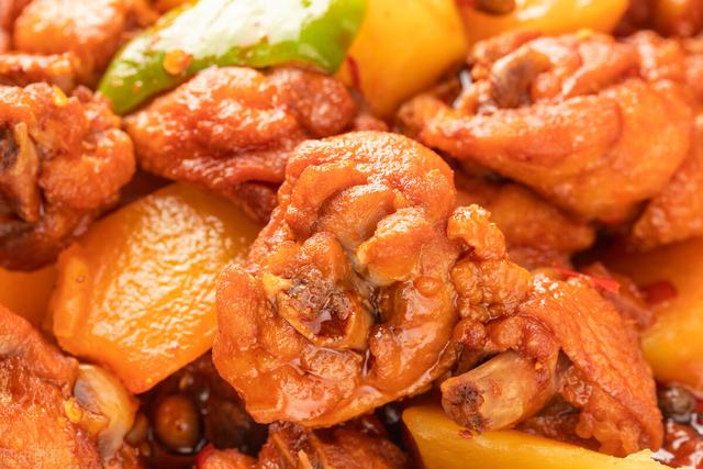 汤汁变得浓稠起来,土豆吸收了鸡肉的香味,接着,放入准备好的青红椒和洋葱,大火收汁,青红椒煮到断生之后,就出锅啦。